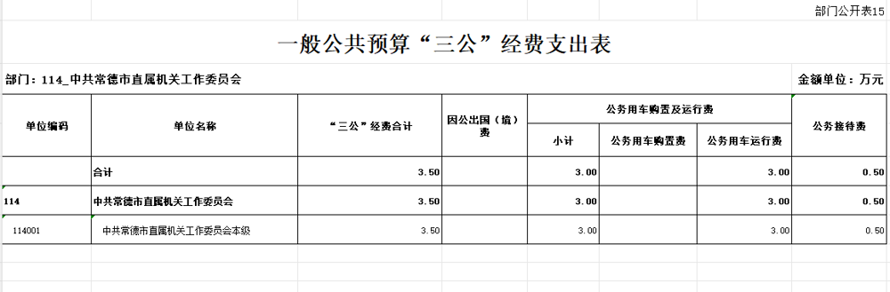 索引号: 所属主题: 三公经费 公开责任部门: 发文日期: 2026-01-25 中共常德市直属机关工作委员会2026年一般公共预算“三公”经费支出表 发布时间:2026-01-25 信息来源: 点击次数: 次 【字体:小 大】 【打印正文】 分享到: