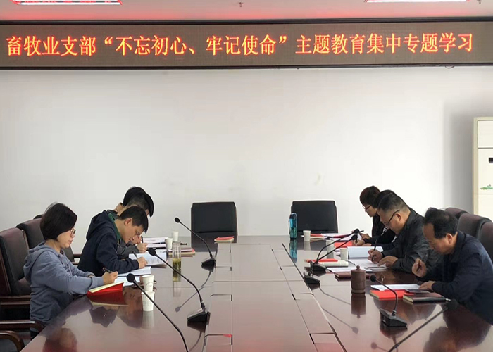 市畜牧水产事务中心召开“不忘初心、牢记使命”主题教育集中专题学习 发布时间:2019-11-19 信息来源:市直机关工委 点击次数: 次 【字体:小 大】 (通讯员 杨佳亮)11月15日,市畜牧水产事务中心畜牧业支部开展“不忘初心、牢记使命”专题集中学习,畜牧业支部全体党员参加,本次专题学习内容:一是学习重要文件。组织学习《中国共产党党内法规制定条例》《中国共产党党内法规和规范性文件备案审查规定》《中国共产党党内法规执行责任制规定》。二是开展学习交流。大家各自结合工作实际谈了自己的学习体会,全体党员都准备充分、理解深刻,收获满满。三是组织党员开展“不忘初心、牢记使命”知识闭卷考试。专题学习现场 【打印正文】 分享到: